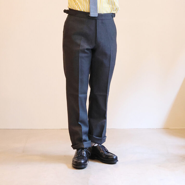形もその当時のトラウザーを忠実に再現しながら、シルエットやパターンを改良したとのこと(店頭で聞いた話なのでウロボロス間違えたうろ覚えですが)。
